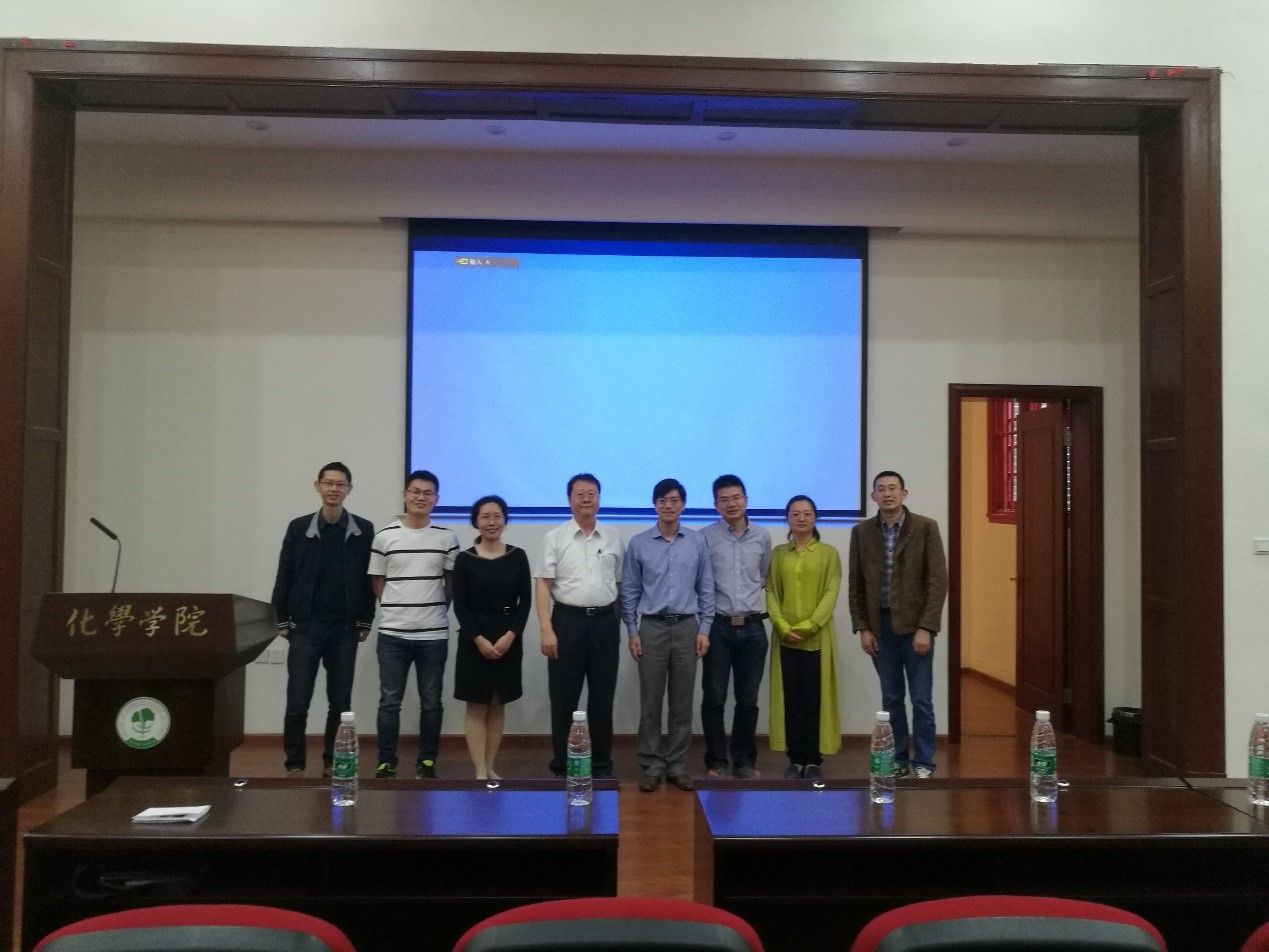 ,在化学馆321报告厅做了题为“New Dimensions of Vanadyl Species in Ion Specific Sensing and Asymmetric Amplified Transcription”的学术报告,陈建添教授首先介绍了钒(Ⅴ)甲醇络合物在不对称催化及DNA光消除中的应用和α-酮酸类化合物的互补还原以及β-羰基酰胺的不对称还原。随后陈教授介绍了C4-不对称的五核手性钒物种在离子特异性识别中的应用。在报告过程中,陈教授语言幽默风趣,讲解深入浅出,激起了在座老师和同学的浓厚兴趣。在提问环节中,陈教授与现场师生进行了深入交流,学术气氛热烈。