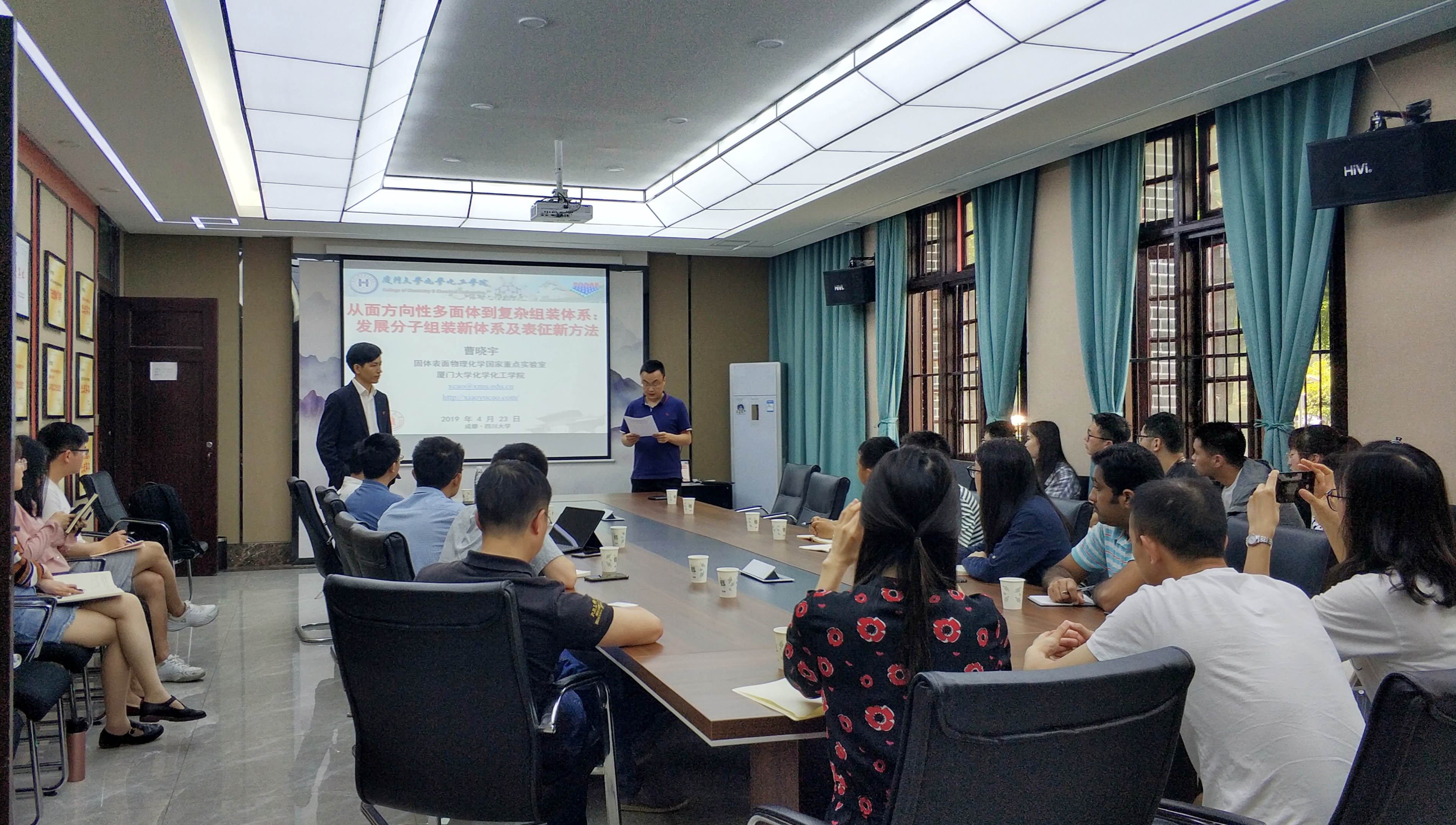 邀请,厦门大学化学化工 曹晓宇教授在化学馆122会议室做了题为“从面方向性多面体到复杂组装体系:发展分子组装新体系及表征新方法”的学术报告。此次报告由潘甜甜