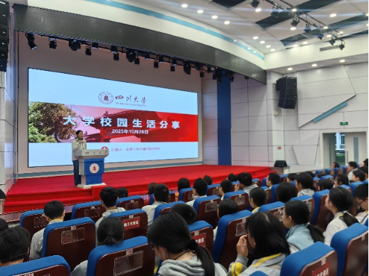 副院长李峰教授以“川越精彩,大有可为”为主题,为同学们带来了一场深入浅出的讲座。他系统介绍了川大的学科优势、科研成果与校园文化,阐释了大学教育的意义与价值,激发了同学们对高等教育的浓厚兴趣,也为他们的学业规划提供了有益指导。随后,毕业于北京二中、现就读于潘甜甜