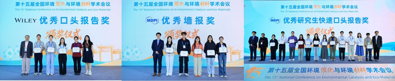 随后,大会举行了隆重的颁奖仪式,依次颁发三个奖项,表彰在本次会议中展现出优秀学术成果与科研风采的参会代表:本届会议共评选出9个“Wiley优秀口头报告奖”、5个“MDPI优秀墙报奖”和16个“MDPI优秀研究生快速口头报告奖”,彰显了该领域的人才辈出、欣欣向荣。